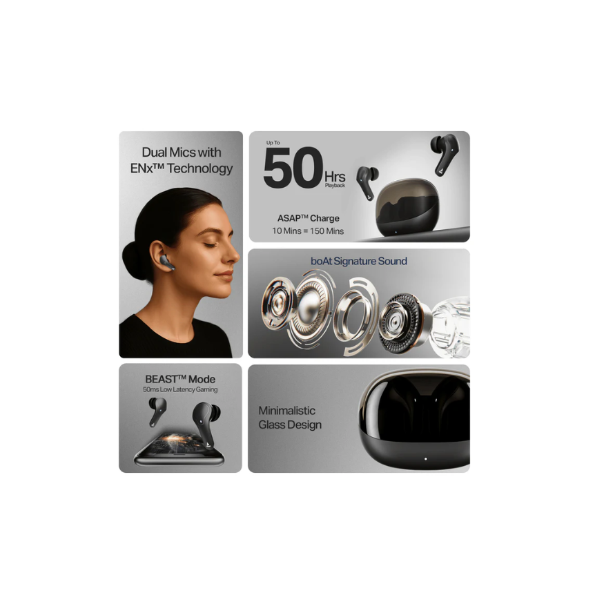 Wireless Earbuds with 50 Hours Playback, Dual Mics with ENx™ Technology, BEAST™ Mode, ASAP™ C