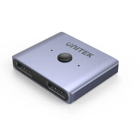 The Unitek 8K DisplayPort Bidirectional Switch is a versatile display adapter that enables users to either connect two DisplayPort sources to one display or one source to two displays. This compact device supports 8K resolution and features seamless switching capabilities.